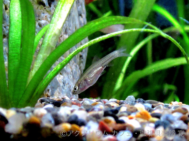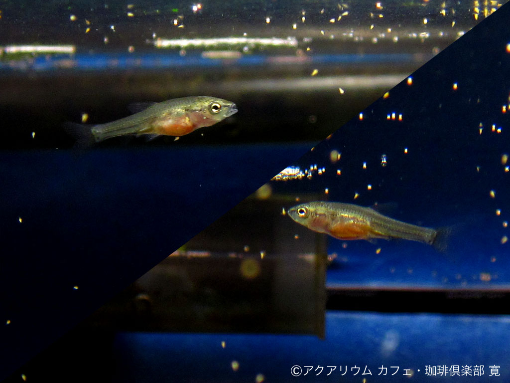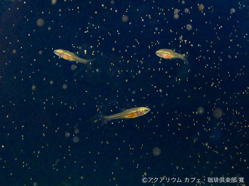 孵化後50日目(水温30℃)になると、もうすかっかり一人前のシナイモツゴとなり、全長も25〜28mmに達しました。