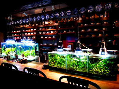 弐百年以上もの年月を経た古材をふんだんに使った暖かみのある店内に立ちこめる、コーヒーの香り。 デコールアートのテーブルランプやアイデックのチェア、 一杯のコーヒーを格調高く演出してくれるのはヨーロッパの名門窯など世界各国の素敵な器・・・。 珈琲倶楽部 寛は、心の底からゆったりできる街中のオアシスだ。 店内ではいつも地元のアーティストの作品を展示。おいしいコーヒーを味わいながらのミニギャラリーとしてもすっかり定着している。 作家とお客、またお客とお客が店を通じて出会い、新しい輪ができる。まさに珈琲倶楽部という名前にふさわしい人の交流が生まれている。 コーヒーにもこだわりがある。 豆は炭火焙煎。このタイプは、よく言えばコクがあるが、ともするとしつこくなりがち。 そこで、炭火のしつこさをなくすために、荒く挽いた豆を通常の2倍にあたる一杯25gも使ってサッとおとす。 粉に挽くのは、オーダーが来てから。注文を聞いて、その都度挽く。 ミルは、熱による風味の損失をなくすため、すり潰す方式のものをやめてスイス製のカッティング方式のものを使用している。 コーヒーは、落ちたらすぐ出す。濁りのない琥珀色を味わってもらうためだ。 おいしいコーヒーと素晴らしい芸術と、心豊かな空間。ここには心に潤いを与えてくれる素敵な出会いがありそうだ。 (人気味本より) |
