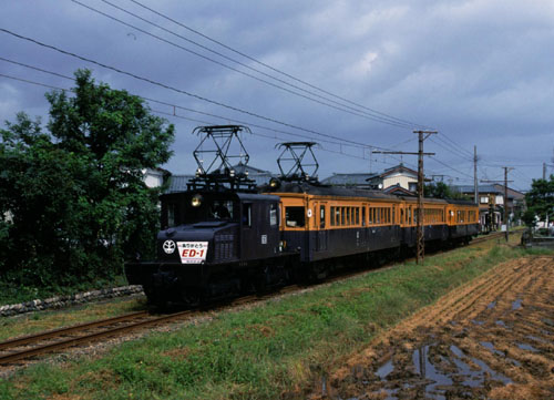 この日は、ファンによる貸切撮影列車が運転された。普段は絶対見られない編成での運転。 駅間に列車を止めての撮影会も行われた。 1999-09-04 蒲原鉄道 村松〜今泉 |