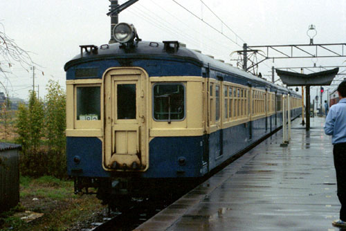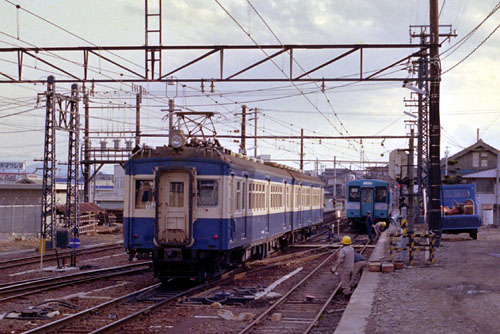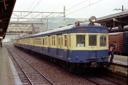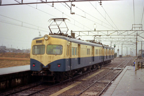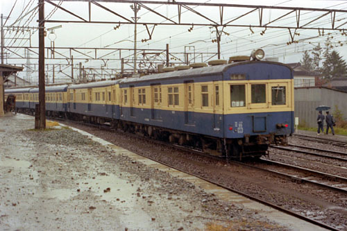 急行退避 急行「天竜5号」の退避で3番線に入る3扉のみの4連。 247M 1982/11/07 七久保 |