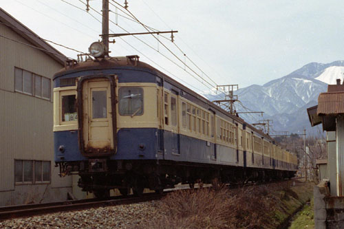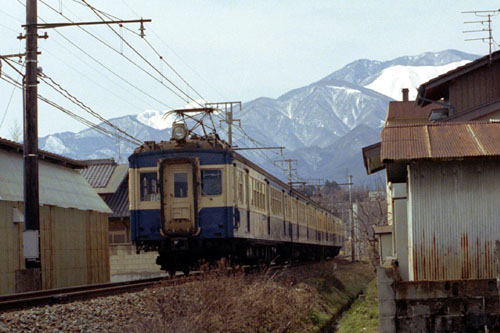 荷物電車(13+83)を併結した編成 上のような単独ばかりではなく、併結した列車もありました。 245M 1983/03/15 伊那市〜下島 |