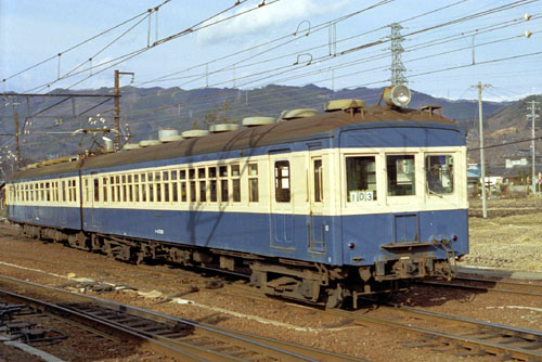 主にクロスシート車が運用されていました。2扉・3扉の比率は半々ぐらいか? 1983/03/15 伊那松島機関区 |