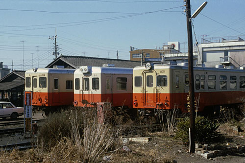 最初で最後の筑波訪問は「さわりをちょっと」で終わってしまいました。コンパクトカメラのショットを除くと今回お見せする4カットのみという始末です。 土浦に進入するキハ503+キハ811。 土浦と隣の真鍋(信)の間は機関区への出入庫のための回送車が連結されます。 1986/02/12 筑波鉄道 土浦 |
