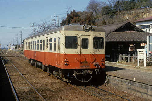保育社刊「私鉄の車輛」シリーズで探した土浦に一番近い撮影地がここでした。 バックの駅舎がいい雰囲気を醸し出しています。 車輛は元雄別鉄道のキハ761。 1986/02/12 筑波鉄道 常陸藤沢 |