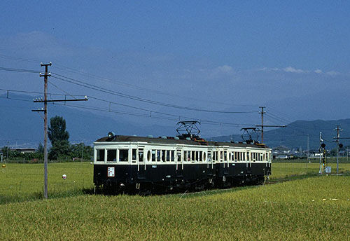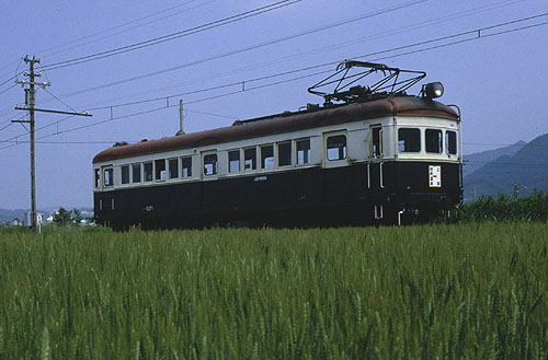 2001/05/29〜07/16 丸窓電車と共に活躍した元長電の車輛です。川崎造船製の重厚な作りが特徴です。 鶫のお気に入りの1輌! 1986/06/10 上田交通 舞田〜八木沢 |