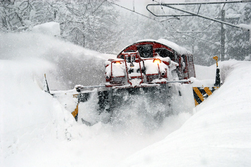 2007/12/30〜2008/04/25 ”雪闘車” このシーズンは12月も早いうちから積もり始め、年末には各地で特雪が出動するという異常なシーズンでした。信越山線も正月明け早々に3日連続の作業。にも拘らず、その翌日から数日間不通になるという事態に陥りました。 2006/01/05 関山〜妙高高原 |