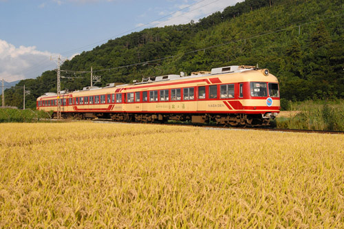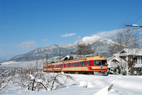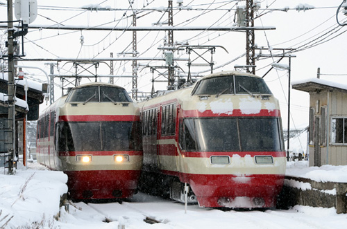 2013/12/17〜2014/10/03 ゆけむり離合 団体列車と定期列車の離合 2012/12/24 長野電鉄 信濃竹原 |