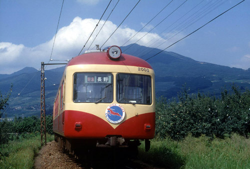 2005/06/10〜2005/09/06 高社山を背に いよいよ引退の決まった長電2000系です。 この日は新しく購入した(中古ですが)カメラの試写をホームグラウンドで行った時のものです。 2005/05/21 長野電鉄 夜間瀬〜上条 |
