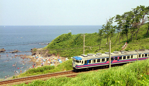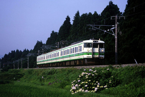 | 2002/06/24〜2002/08/10 紫陽花の花咲く頃 この区間で撮影できる新潟色唯一の列車です。 2000/07/?? 関山〜二本木 |
