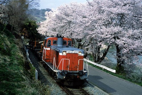 2003/3/26〜2003/6/21 飯山線で運転されたチキ工臨(レール輸送空車回送)です。 この年は春が来るのが異常に早く、例年だとよくて咲き始めのこの時期に、満開のさくらがみられました。 2002/04/13 替佐〜上今井 |