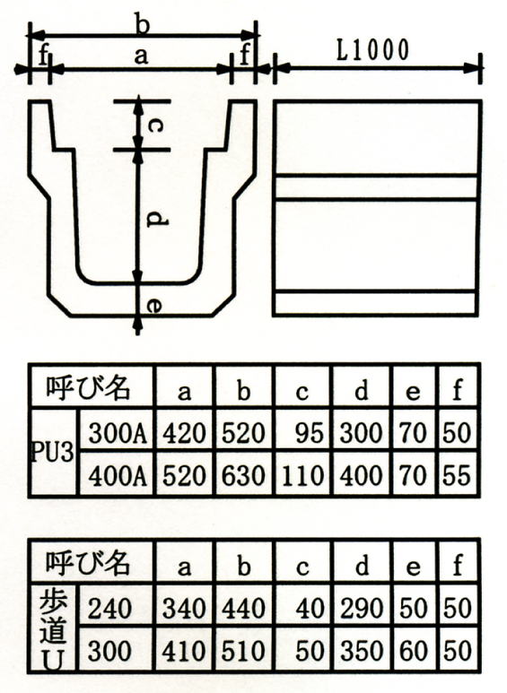鉄筋コンクリートPU3&歩道用U