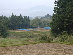 来春まで腐らない様に藁におを積み 農家の人にシートで覆いをしてもらう。 |