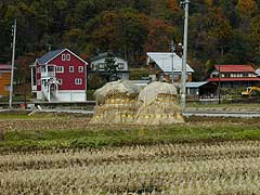 隣の田の大きな藁にお。来春まで冬越し、この辺りは雪が150センチぐらい積もる。![]() |