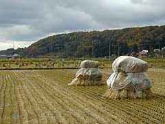 秋の藁は葡萄の木の凍害防止とりんご園の肥料用に約3000束 | |