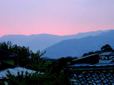 先日自宅の二階より撮った朝焼けの写真をこのページに使用する事に。