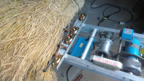 藁縛り機2号機の使い勝手を調べる為に実際の仕事に使って細かな調整をする。
