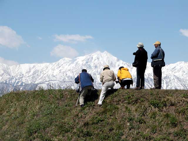 - 今日も鬼無里村に、北アルプスは昨夜からの雪と今日の青空で絶好の撮影日和と確信、そこで帰りには遠回りし、北アルプスの眺めが良い事で有名な小川村を通り写真を撮る。イメージどうりの写真は撮れなかったが、撮影ポイントで北アルプスを撮る群馬からのグループの人を入れなにげなく撮った一枚が良いできでトップに使う。